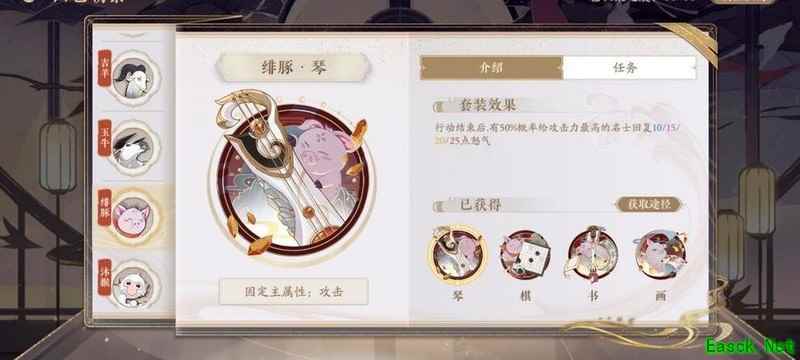 绯豚:行动后有几率为攻击力最高的名士提升怒气。辅助位若无合适人选可选择携带猪,为主力输出提供不稳定的怒气回复,增强整体输出能力,尤其主力为首辅时效果更佳。