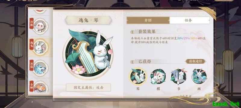 逸兔用于保命,当前排输出或辅助生存能力不足时,携带兔子可避免被秒杀。