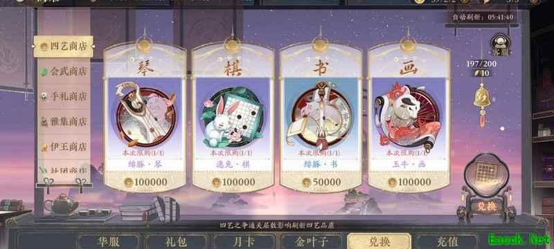 商店四艺免费刷取即可,无需消耗叶子,橙色套装缺件可购买,蓝紫色装备不值得投入,铜币后期紧缺,务必节约使用。