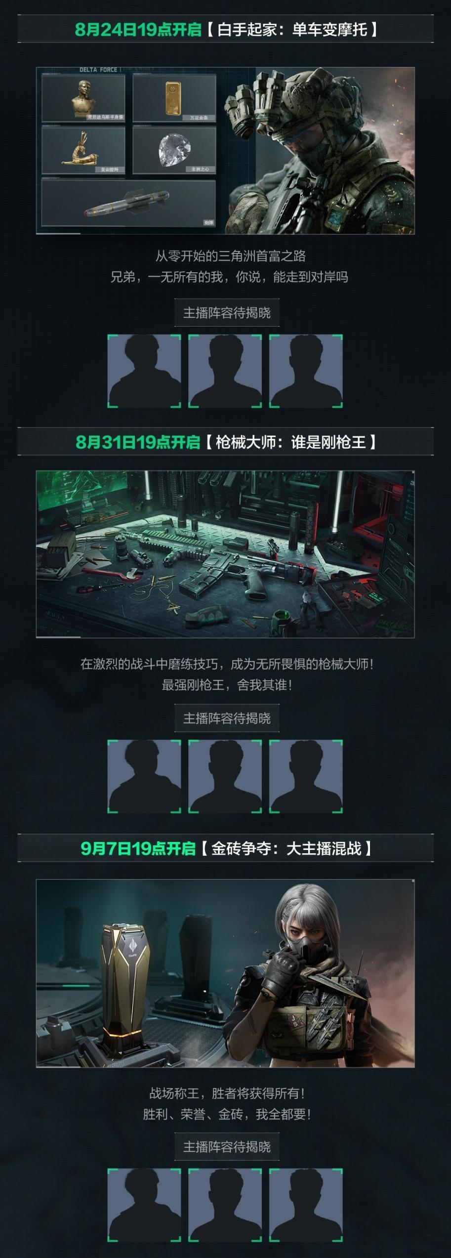 第一周的赛事落下帷幕,但行动并没有结束,我们期待着下一次的集结号角!8月17日至9月7日,每周六晚锁定《三角洲行动》官方直播间,这个夏天一起来三角洲行动搜打撤呗!