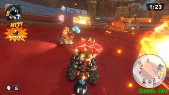 ·新的规则玩法“轰隆!Bob-omb”登场,新的道具Bob-omb可以击破对手的气球,不过与通常赛事战斗规则不同,Bob-omb可以积攒10个,扔个痛快。、