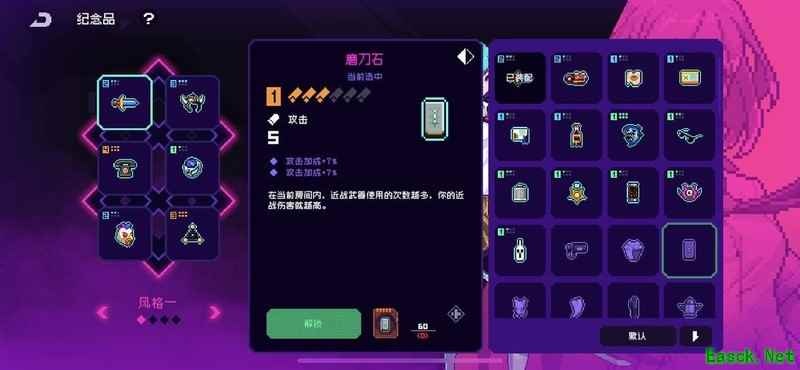 磨刀石天赋随攻击次数叠加伤害,是近战角色的核心选择,可惜尚未抽中,目前暂以其他技能替代使用。