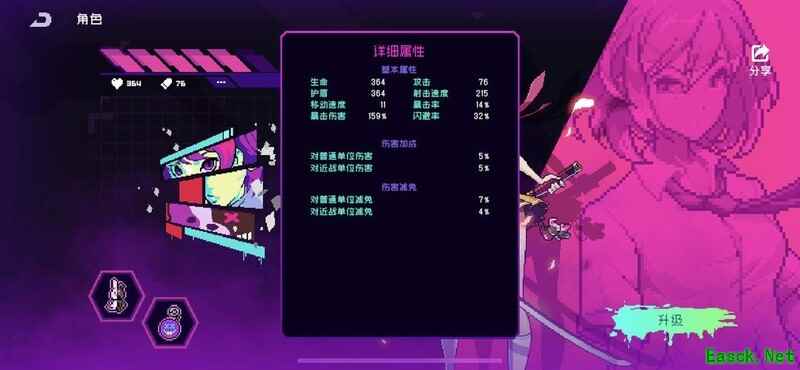 纱夜差一级满级,当前攻击力面板为76。