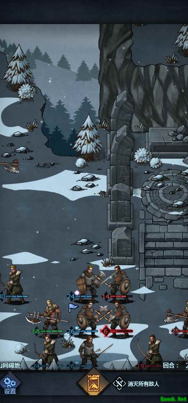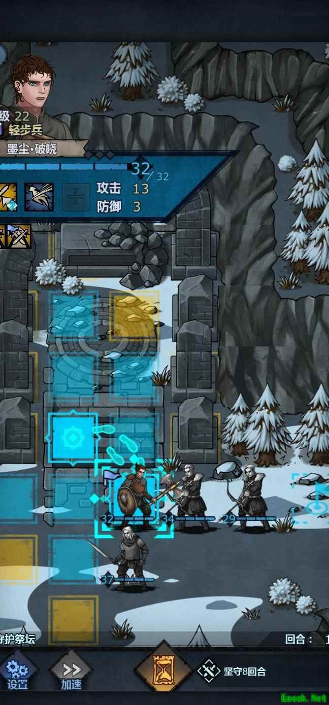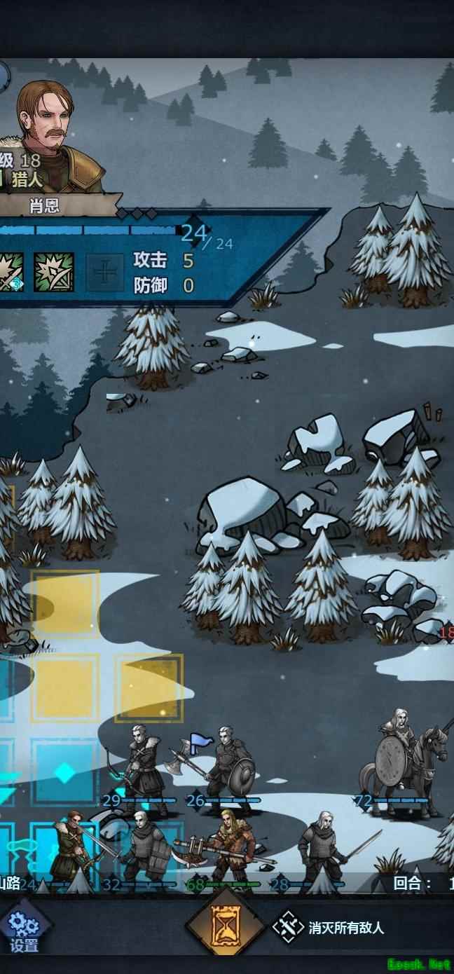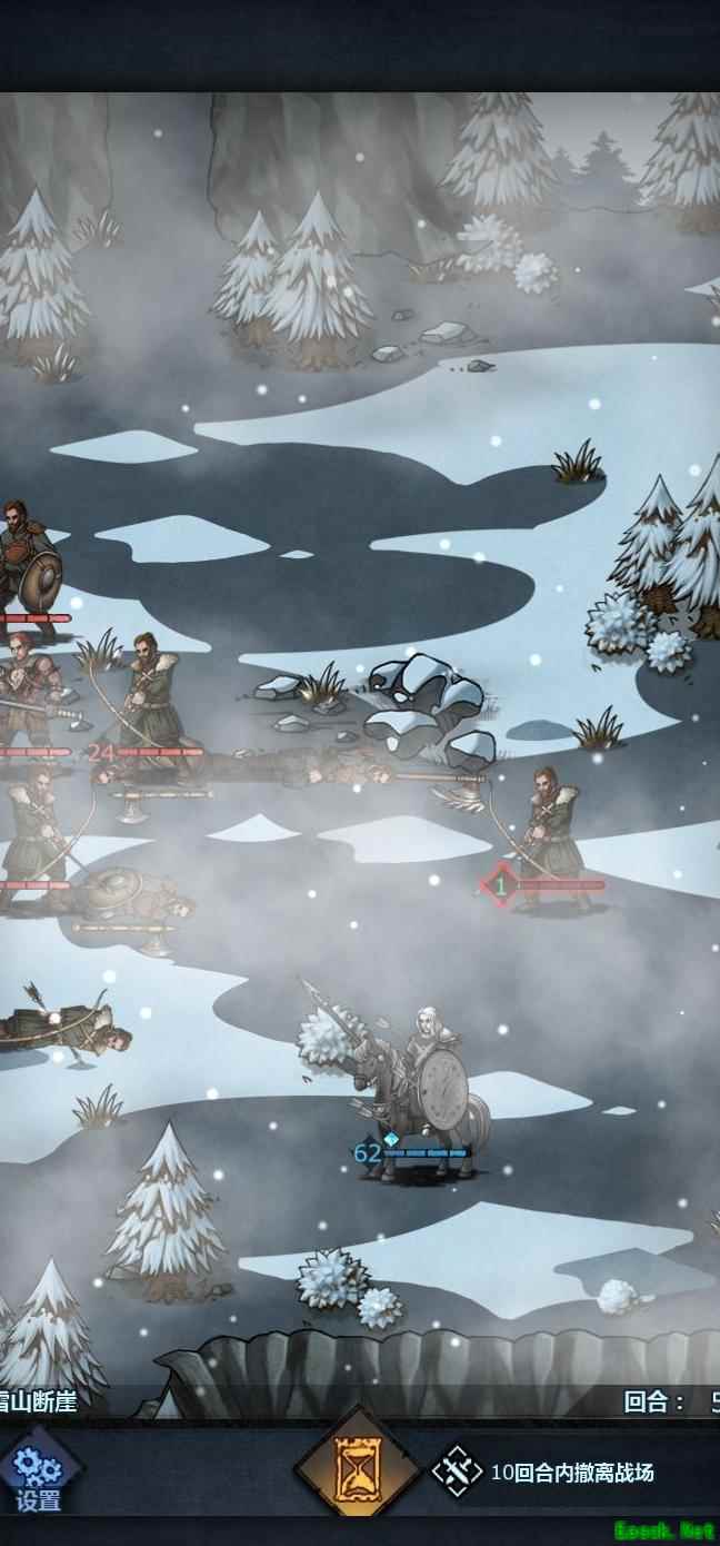 老骑士负责断后迎敌,其余人立即向右撤离。若遭遇攻击,可选择击杀一名敌人。前排队员置于上方,老骑士坚守阵地拼死作战,其他人迅速离开。留一人在撤离区边缘待命,随时准备撤退。老骑士行动灵活,注意避开山贼头领的攻击范围,便可自如应对战局。