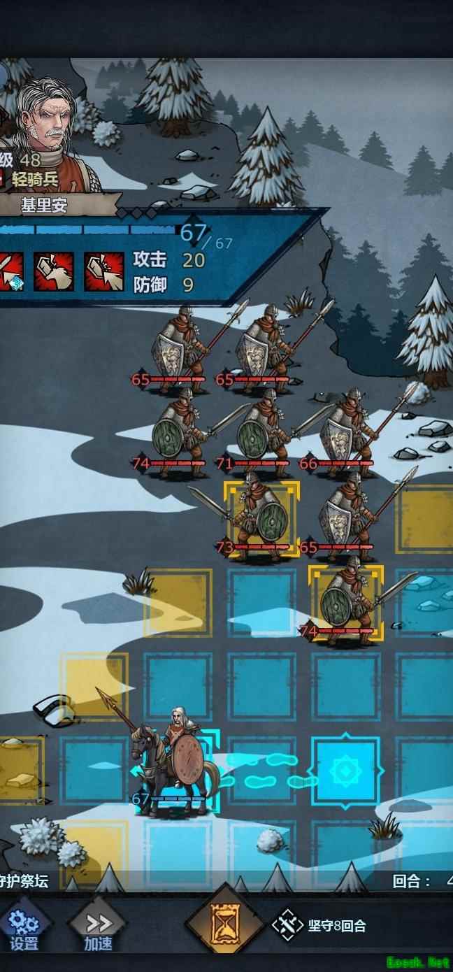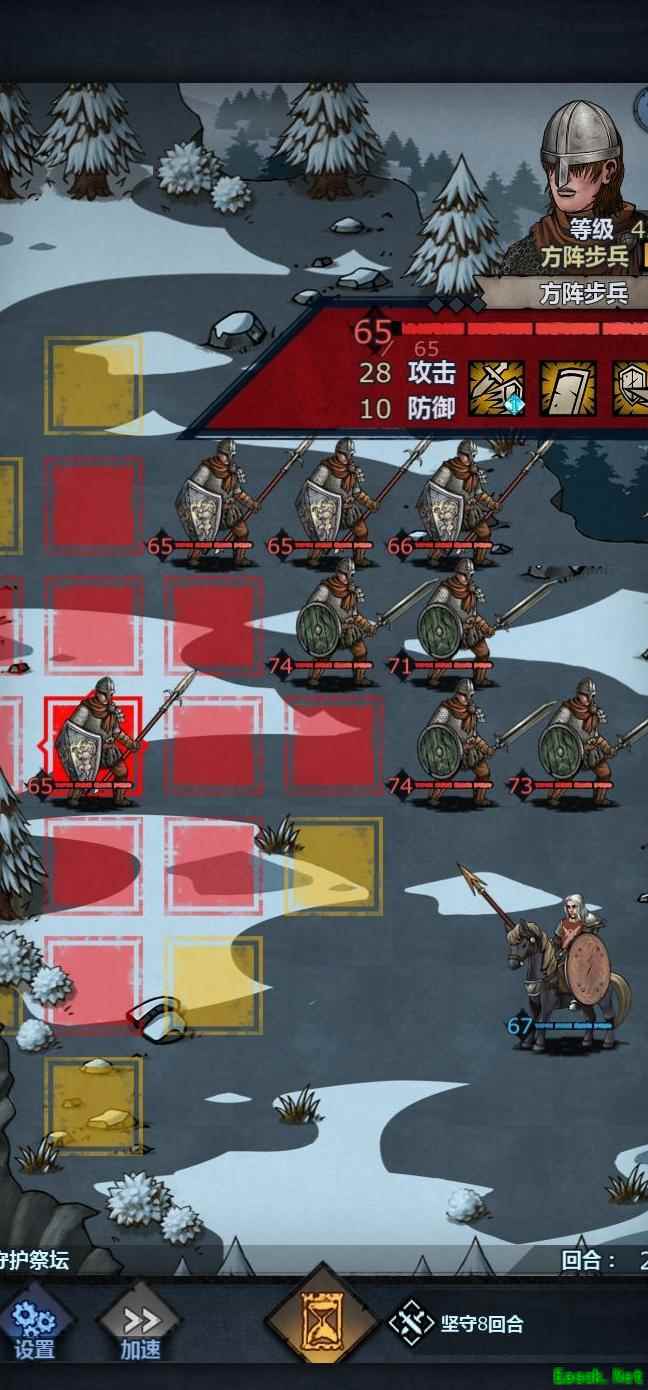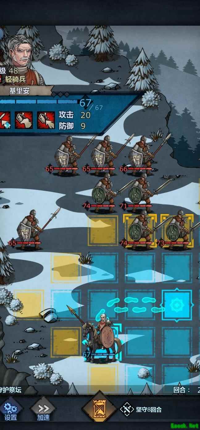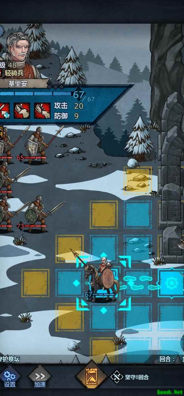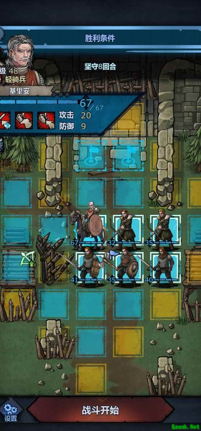 将老骑士置于左上角,中间留出空位,前排血量较低时可退至该位置,由满血单位接替上阵,只要不被立即击杀均可轮换。