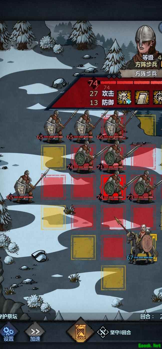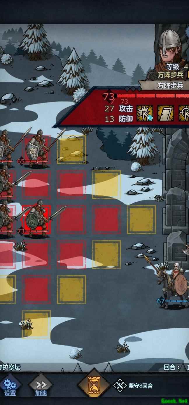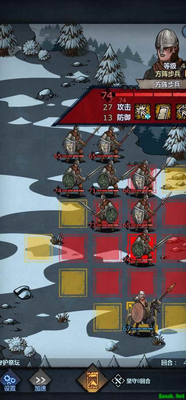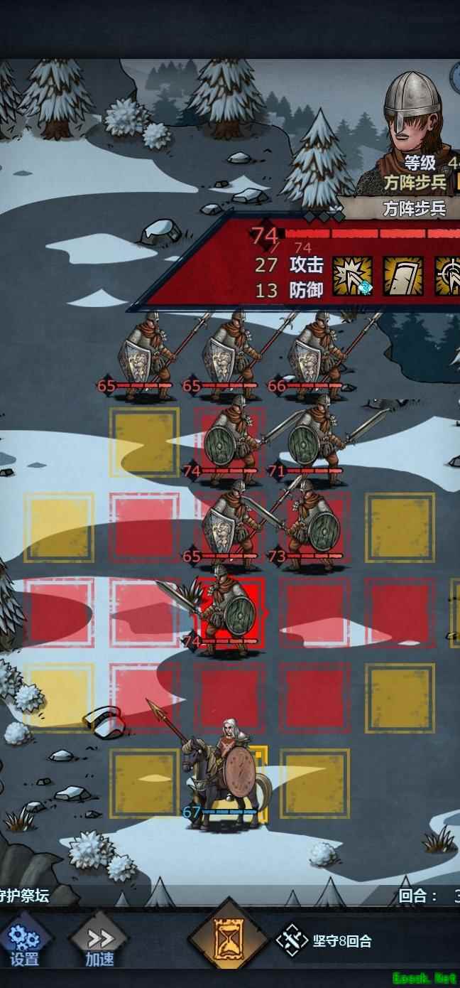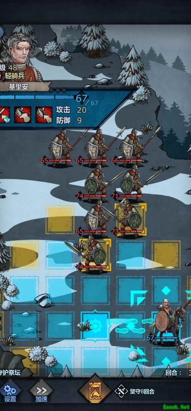 将老骑士置于左上角,中间留出空位,前排血量较低时可退至该位置,由满血单位接替上阵,只要不被立即击杀均可轮换。