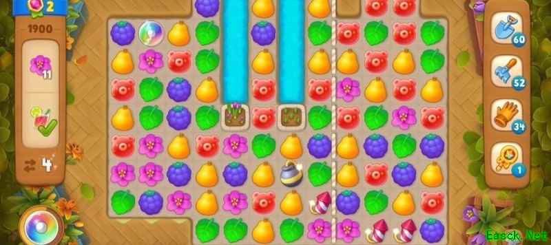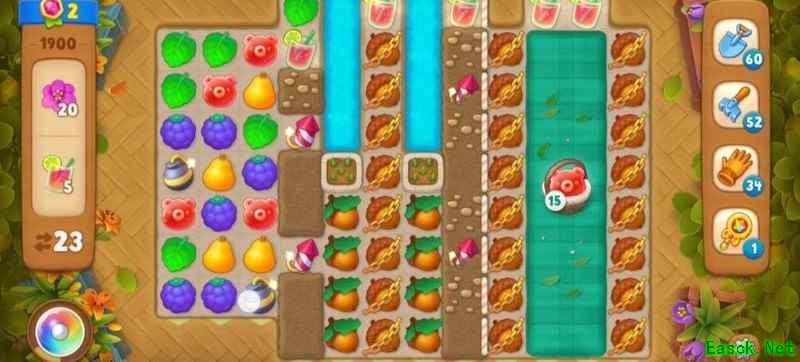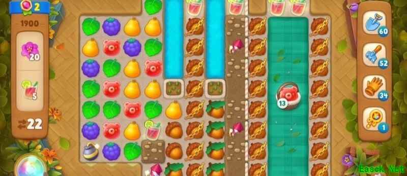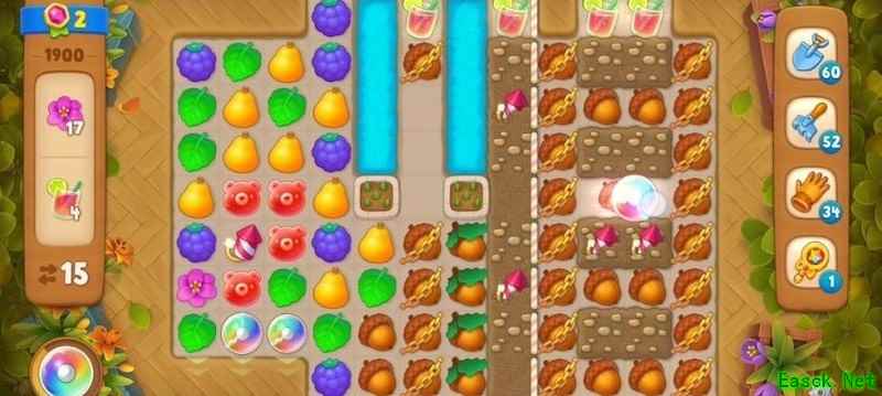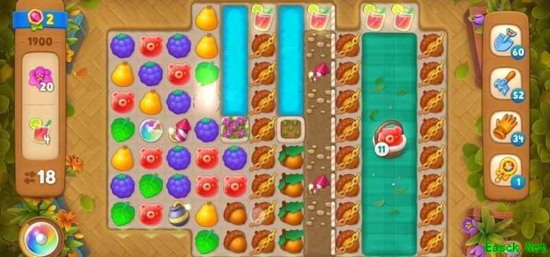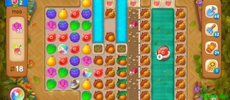 关卡中藏有多个埋在土块里的烟花,可与任意元素互换。利用烟花清除障碍,并在两花坛间进行元素匹配,实现同时开花,有效节省步数,提升通关效率。