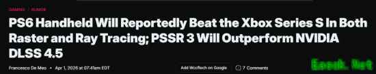 KeplerL2指出,目前Nintendo Switch 2主要依赖DLSS 2(甚至部分游戏使用更低规格的“DLSS Lite”),而索尼的PSSR 3有望在图像质量上实现全面领先,甚至超过当前版本的DLSS 4.5。这意味着,PS6掌机不仅性能更强,在画面表现上也可能明显优于现阶段主流掌机,包括依赖其他超分方案的设备。