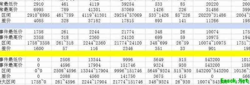 价格区间一览表