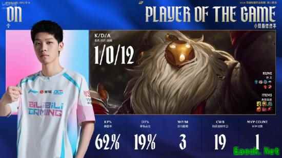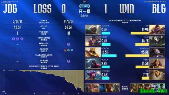 4月5日,《英雄联盟》2026 LPL第二赛段组内赛,BLG以1:0领先JDG,首局辅助ON斩获MVP。