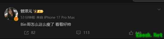 场间休息时,知名解说管泽元突然发文“示爱”:“Bin哥怎么这么瘦了,看着好帅”,引发网友热议。