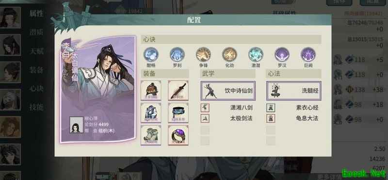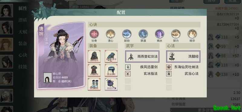 选用洗髓作为主内功,因在无张月配合时,巫玄提供的减伤效果不够稳定。搭配王家与幻移22套装,心决采用争锋与化劲,整体减伤可达60%,爆抗经洗练后最高可至200%。结合李白的眩晕控制,能在战场上灵活穿梭,进退自如,提升生存与作战效率。
