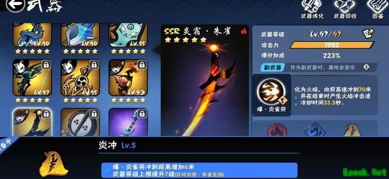 在探险中,冷却时间短的武器更受欢迎,因此我将火扇子配置为5级咒印并激活咒印以提升效率。