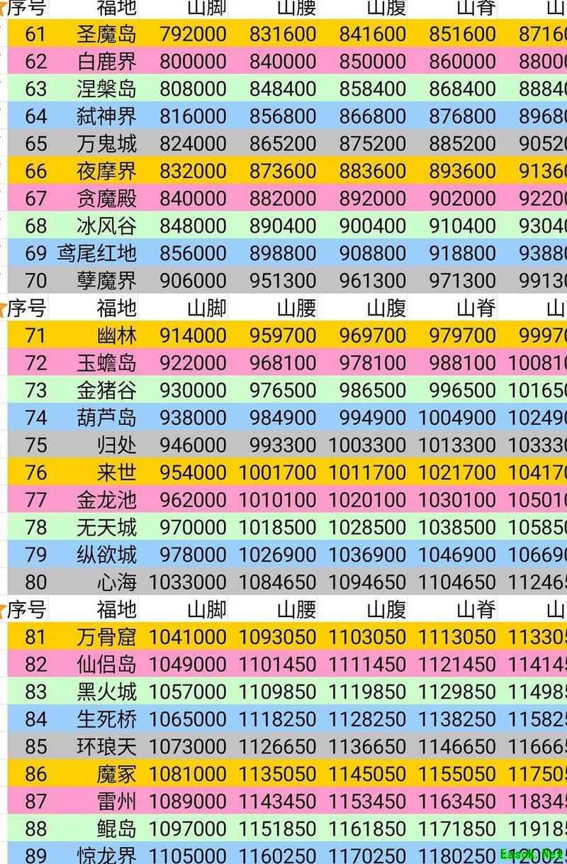 各星级福地山脚守卫的攻击力,相较于前一福地依次递增。