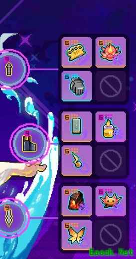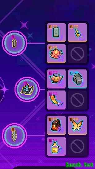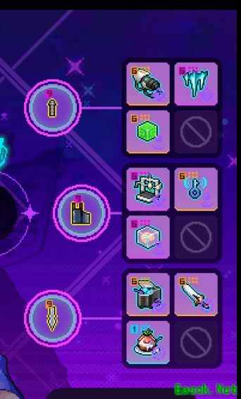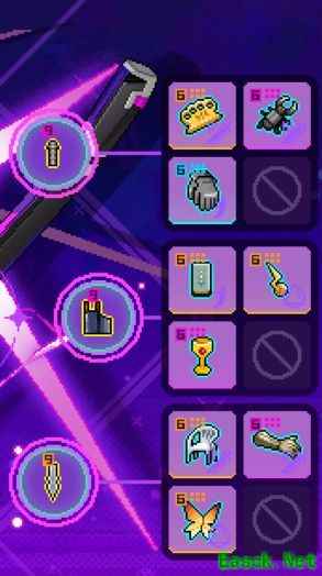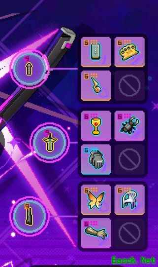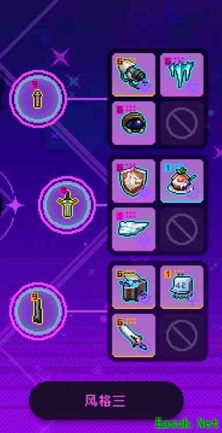 由于紫夜模组延长了技能期间的无敌帧,前期可全部携带增伤类道具,局内轻松实现无限夜一,长时间维持无敌状态,大幅降低生存压力。尽管如此,仍存在短暂间隙可能受伤,若感觉生存不足,可将恶魔热线替换为圣杯,沿用紫夜无模组的经典配置。在副武器选择上,因主要依赖技能输出,普通攻击使用较少,对第三段平A需求不高,因此无需选择疾风北塔,可直接使用前端黑铁棒,核心与末端部位优先考虑提升近战攻击范围,进一步增强输出效率与战斗容错。