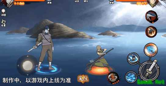 若释放水遁·爆水冲波改变场景为水上作战,2A、3A后摇时均可下拉摇杆并普攻,青年鬼鲛潜入水中一段时间,期间可自由移动,随后乘浪钻出,在浪上时可继续普攻打出水上4A,随后踏浪跃至空中反手落地斩击,命中则附加流血效果。