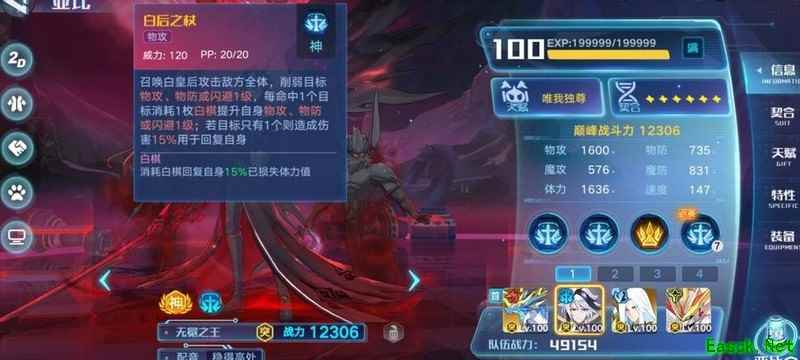 大招万界必破具备出色性能,满级伤害达280点,命中后可恢复相当于25%物攻的血量,并降低目标双防120点,持续四回合。除可对麻痹目标触发君临天下外,还能清除增益状态。但所有附加效果均需命中处于麻痹状态的敌人才能生效,限制较明显。