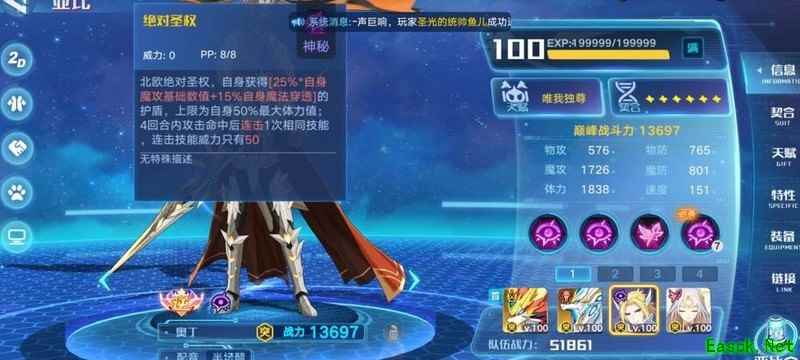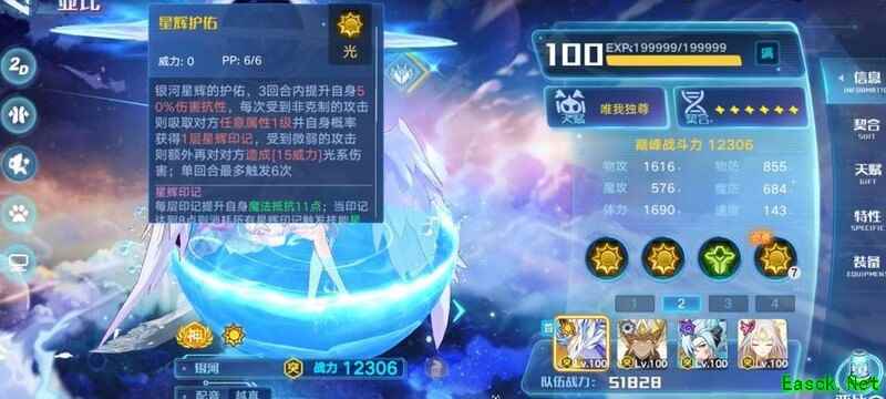 星辉汇聚,伤害化盾,必杀护体,属性提升,增强12%输出能力。