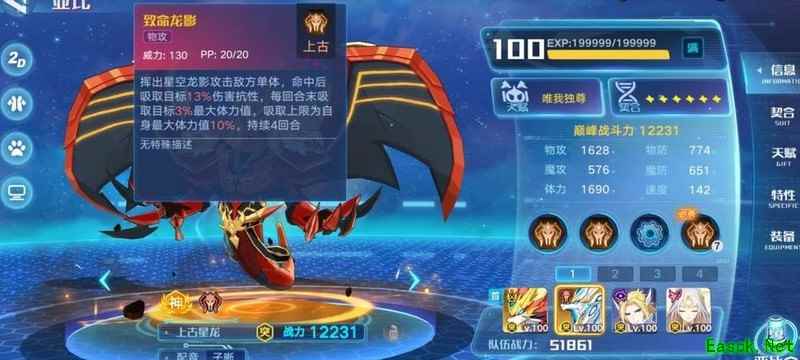 星龙的一技能致命龙影使其在游戏前期表现出色,但操作要求较高,需精准掌握吸血、锁属性和强化时机,稍有失误便易失败。正因这一技能,星龙成为前期副本中的强力磨血角色,曾有不少玩家用它在20回合内通杀洞穴6层,堪称前期王者。