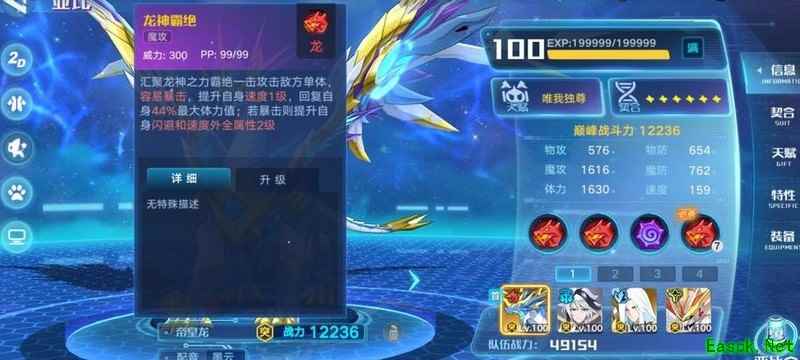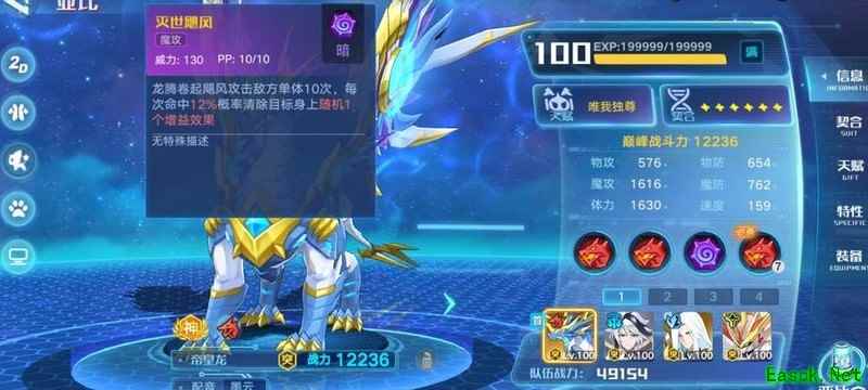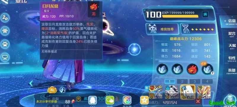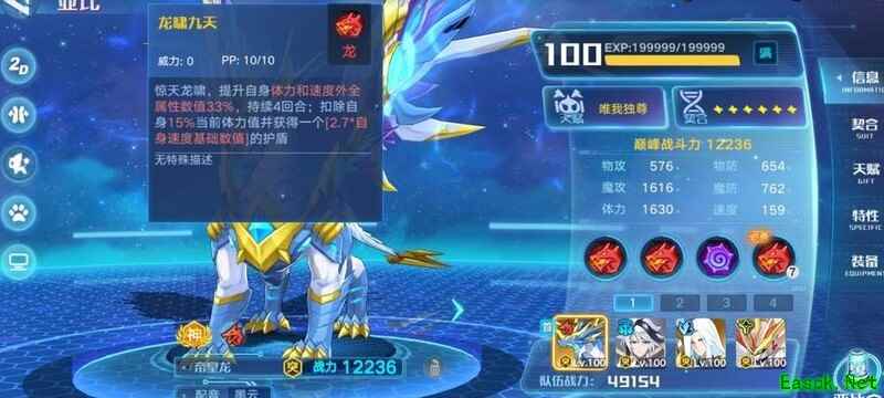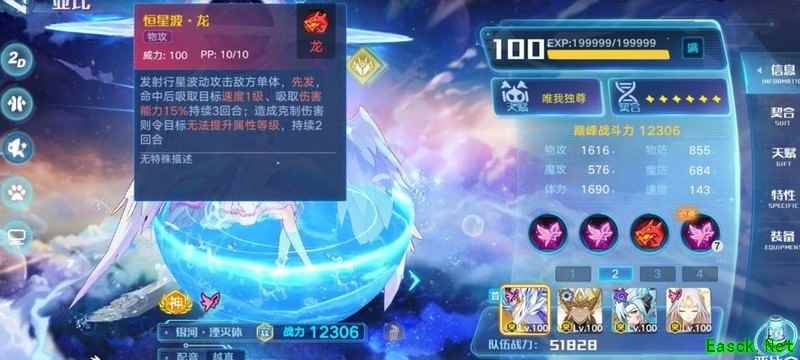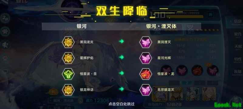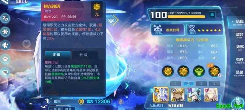 银龙神话大招,消耗4能量,增强全属性一技能并叠加两层星辉。