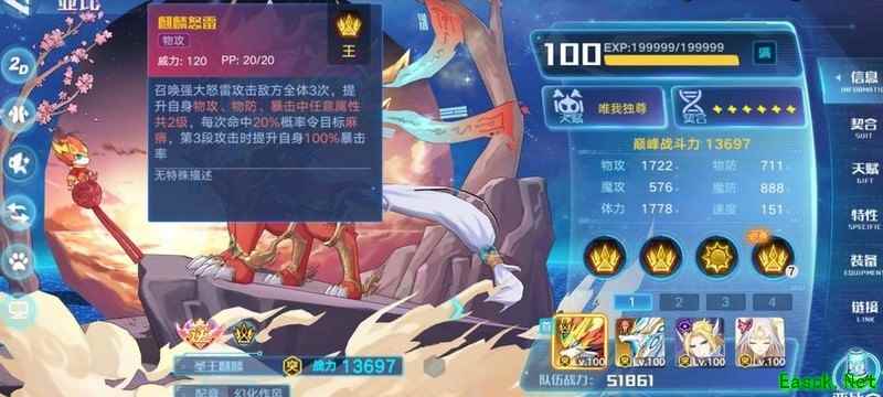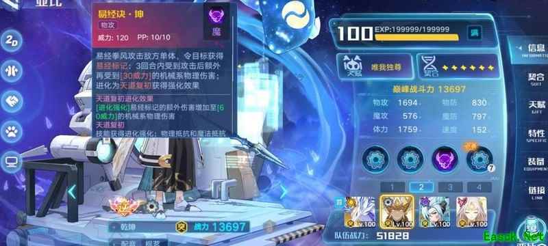 乾坤的技能表面平平无奇,但搭配其进化机制则变得极为强势。然而其弱点也突出:进化依赖大招,而大招需积累回合能量。因此他是典型的后期成长型宠兽,前期较弱,一旦发育成型便能轻松压制众多对手。