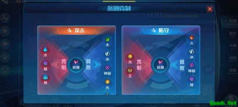 奥拉星目前拥有15种属性,分为5个组别,每组包含3种单一属性,组内属性间遵循类似剪刀石头布的相互克制关系。