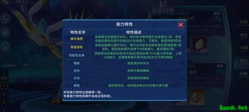 该特性有效弥补了麒麟一技能麻痹概率不足的缺陷,只要运气不太差,便能让对手整回合处于无法行动的被动状态,我亲身经历过这种压制效果。