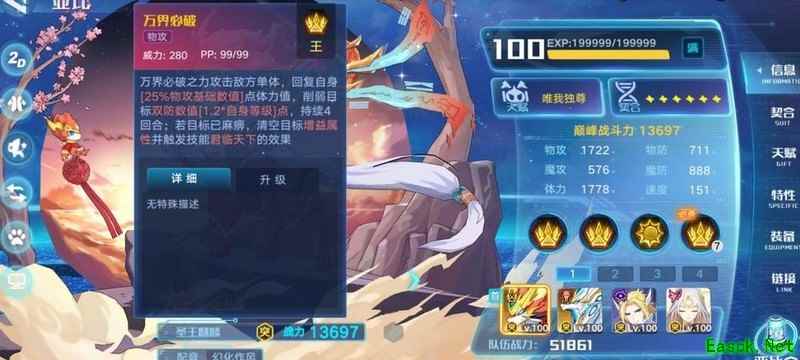 大招玄黄倾覆可触发乾坤之力,每次施展均可获得一次进化强化效果。