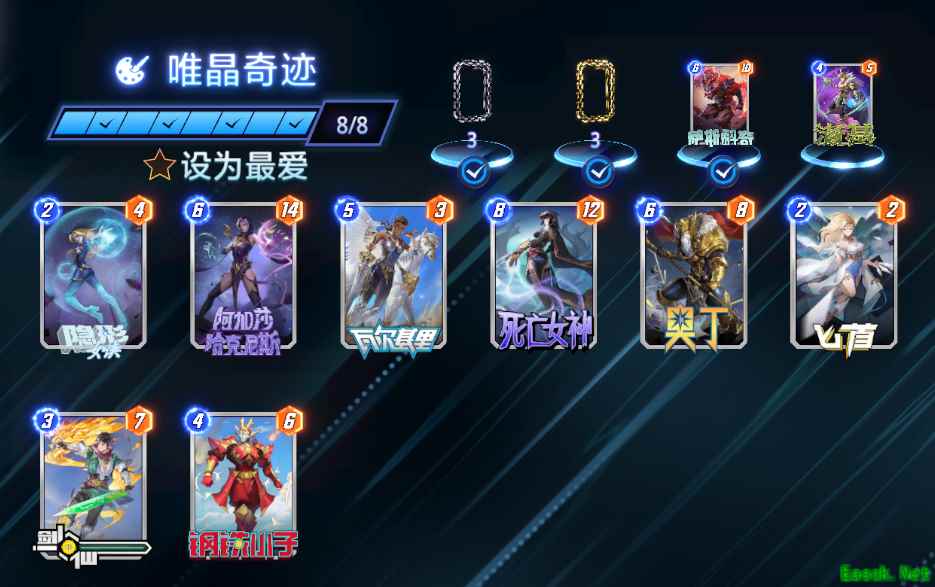 在你进入大竞技场之前,你需要挑选你的斗士!你既可以使用预设的卡组,也可以在此游戏模式中为该斗士组建一个自定义卡组!这8个新的自定义卡组栏位是与每一位斗士单独绑定的,不会占用你排位模式卡组栏位。?