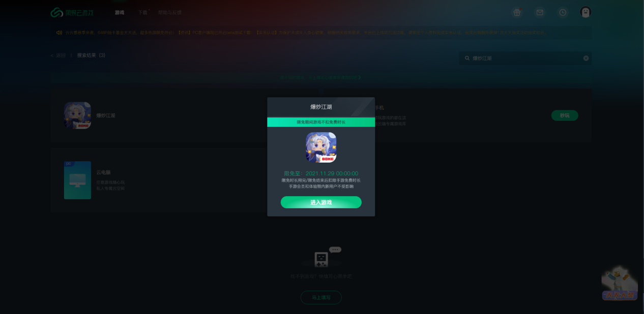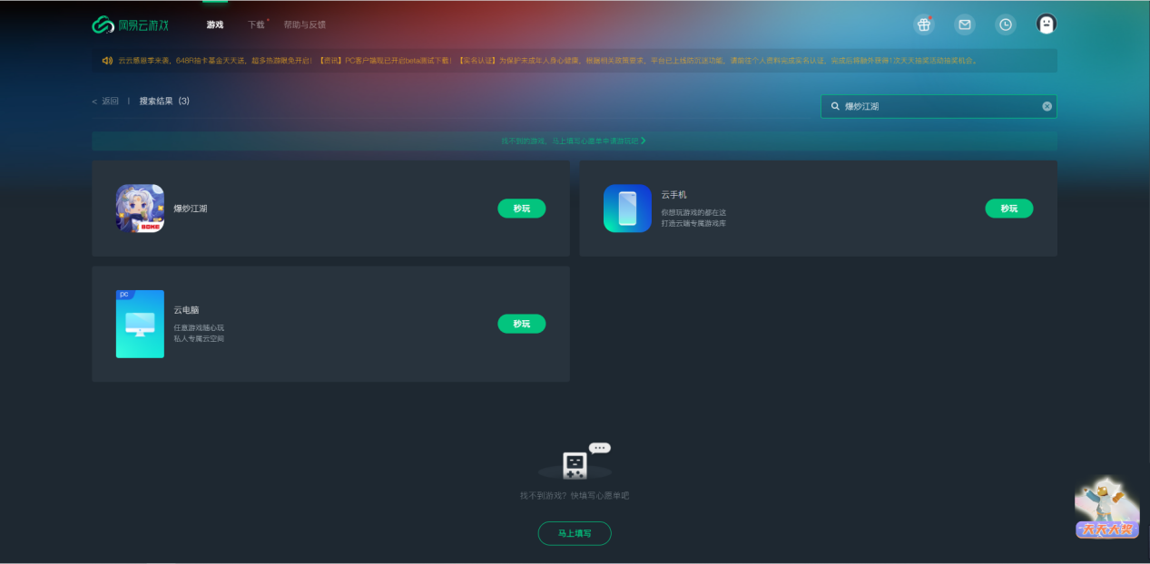 第一步:在浏览器搜索“网易云游戏”,进入官网。