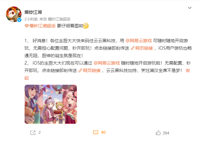 不过《爆炒江湖》这款游戏却在最近从苹果应用商店下架了,可让不少iOS玩家发了愁。不用担心,目前已经有可以解决的办法啦,那就是使用网易云游戏平台。目前官方微博也有推荐大家使用网易云游戏来体验,亲测好用。