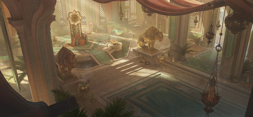 沙漠最初由沙漠之神图鲁米诺斯庇护,祂创造了栖息于风蚀石林迷宫的牛头人部族。随着神明更迭,大河神达温降临,以神力塑造绿洲并创造眷属虎人族群。同时,被流放的提亚马特子嗣火龙盘踞拉玛兰山麓黄金宫殿,吸引蜥蜴人族群定居火山脚下。