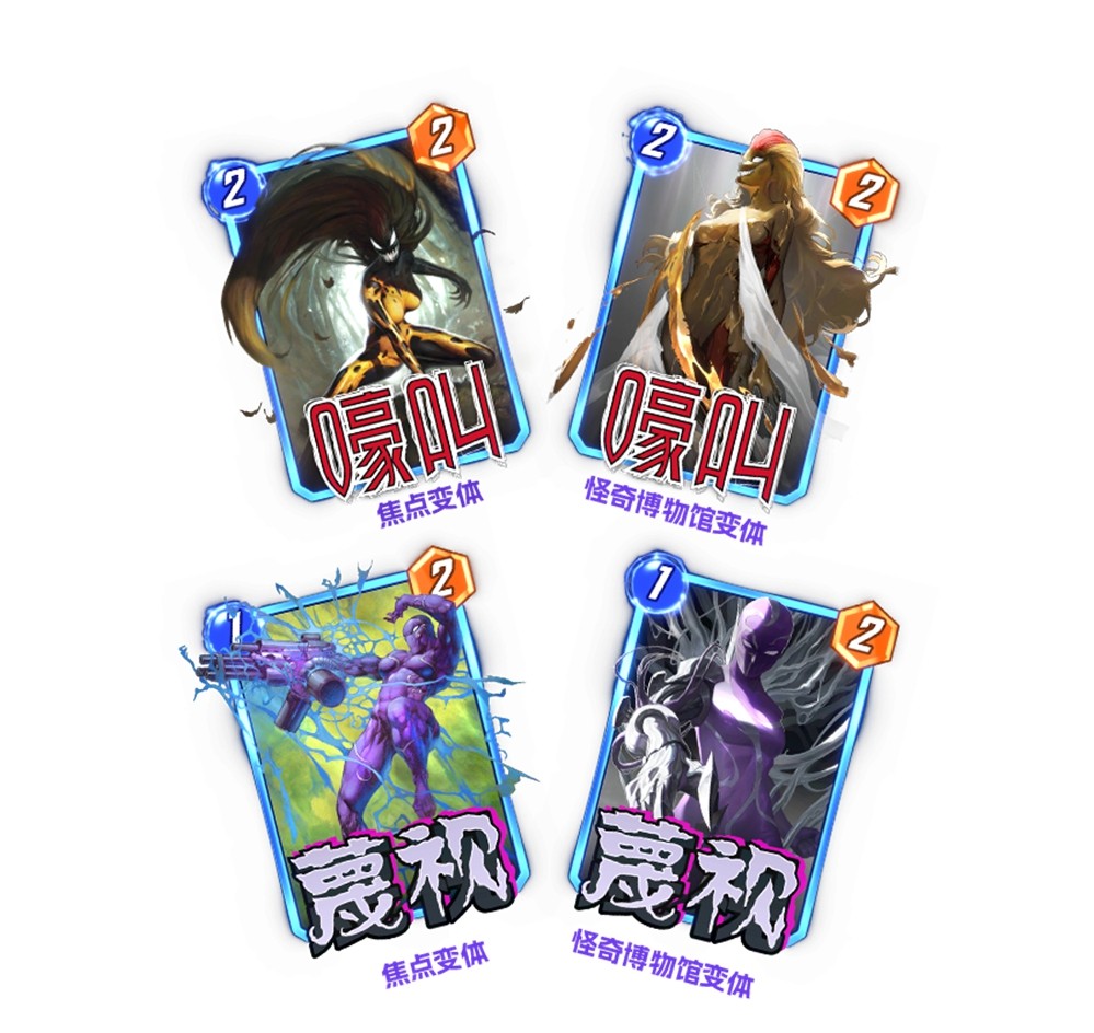 赛季新卡「卡霍莉」、「无限奥创」、「至尊奇异博士」、「歌利亚」和「九头蛇践踏者」。
