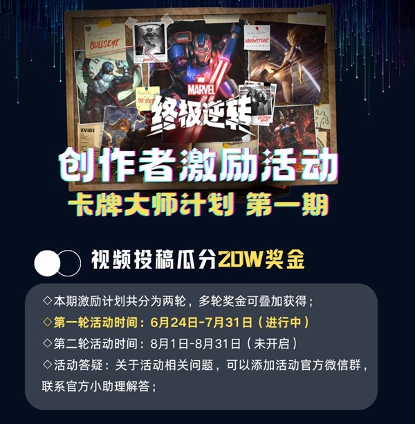 新人奖励:首次参与漫威终极逆转短视频投稿活动,在社群私信官方小助理打卡,即可获得50金块奖励!