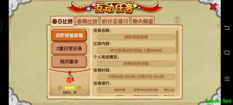 举个简单的例子,比如有一个获取进阶经验的任务,早上张三看到任务后立刻动手完成,获得了9000点进阶经验。看到自己排在第一名,他感到十分满意,之后便没有再关注。到了晚上,李四上线后也完成了这个任务,并获得了10000点进阶经验,达到了任务奖励的上限。第二天张三上线后发现自己的排名掉到了第二位,感到有些不解。其实原因很简单,任务系统根据获得的总分进行排名,李四达到了上限,因此稳居第一。而张三虽然完成得早,但经验没有达到上限,所以排名自然落后。如果张三后续也获得了10000点经验,就能和李四并列第一。这个例子说明,在类似任务中,只有达到上限才能确保排名不被后来者超越。