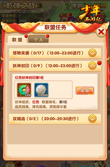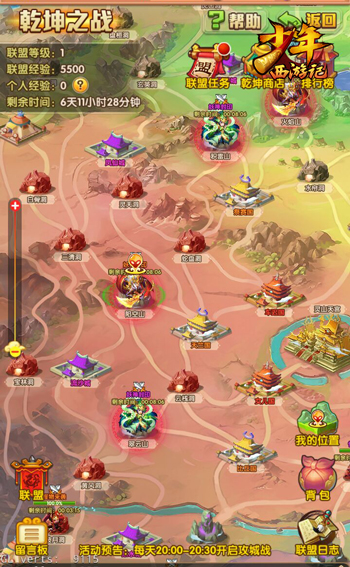 与之前以帮派为单位的竞技方式不同,乾坤之战开启后,系统将随机分配区服组成跨服联盟。联盟成员可通过完成任务升级联盟等级,成员除了可以获得资源奖励外,还可享受到全阵容属性加成,从而极大提升战力。