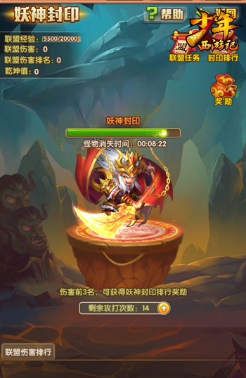 乾坤之战的主战场为融合SLG元素的三界大地图,该地图上存在着若干城池据点。当“怪物来袭”、“妖界封印”两种BOSS战开启后,联盟玩家可前往相应城池合力讨伐,争夺金色碎片、元宝等海量游戏资源道具。