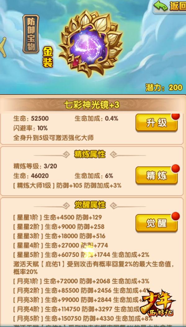 在新版本“金耀三界”中,金色宝物也将登场。相较红色宝物,金色宝物拥有更高的属性加成。此外,除了能进行精炼升级来提升宝物技能,全新的金色宝物还开启了觉醒玩法,玩家通过宝物觉醒,可开启金色宝物特有的属性加成,助力玩家在战局中的表现。
