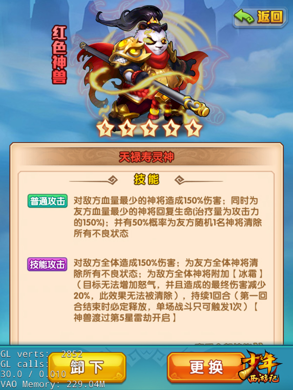 此外,“天禄寿灵神”首开了清状态和控怒气双效果大招,一招“棍灭九天”可以消灭我方所有负面效果,并能将“石化”、“灼伤”等debuff全部清除。除了能对敌方附加“冰霜”效果,还能有效控制敌方神将的怒气增长,百分比减少其伤害,此消彼长,牢牢掌控战局。