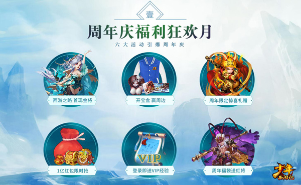 除了重磅玩法的推出,7月4号还是《少年西游记》一周年“福利狂欢月”开启的日子,六大活动共庆周年,玩家参与可获得定制周年庆称号、限定变身卡、红仙灵、红将等超珍稀资源,总计价值超过10万元宝。