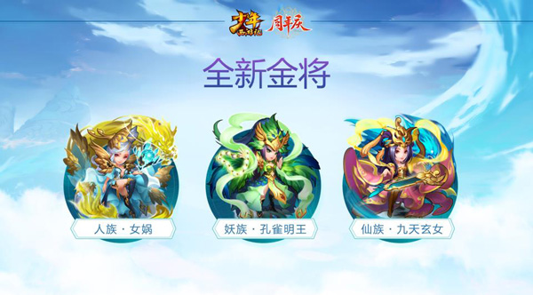 本次资料片中上线的三大金将分别为女娲、孔雀明王和九天玄女。作为时隔半年推出的新神将,金将拥有法宝技能和元魂技能的双重团队型大招,极大增强了整体的阵容输出和防御能力,让玩家在与敌军拼杀中占据强力主导地位。特别是金将首开的专属超级属性——神圣属性,具有反弹伤害和无视减伤的设定,可谓战场收割的大杀器。