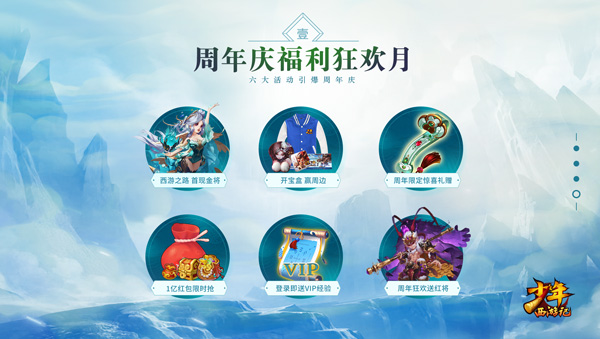 在《少年西游记》1周岁生日来临之际,“福利狂欢月”六大主题狂欢活动将从线上、线下等多个平台全方位提供游戏福利。