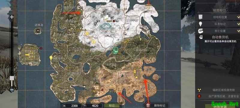 图中标记处是飞机通常首次出现的位置,其飞行路线会环绕整个地图一周。飞机每六小时刷新一次,建议前期不要轻易攻击,以免消耗过多资源。等到拥有强力武器后,可在外围搭建防御工事进行射击,但需警惕他人趁机抢夺。飞机被击落后会坠地,注意保持安全距离,避免受到波及。击落飞机有一定几率获得发动机及其他物资,其中发动机属于基地关键材料,可用于基地建设,若有富余还可用于兑换贸易券,提升资源获取效率。