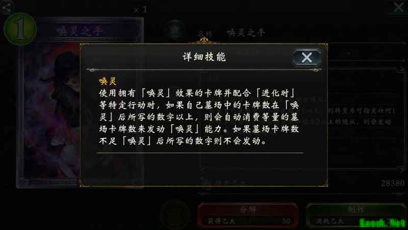 唤灵师特有技能,其余职业消耗墓地数量亦可触发唤灵。