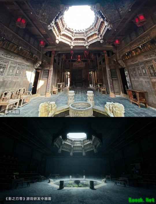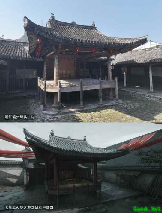 《艺术学研究》在专题中将《影之刃零》的游戏场景建模与现实文旅景点进行了并置对比。江南古村落中的戏台、苏式园林的天井院落、北京首钢园区的工业遗迹……这些散落在中国大地上的真实空间,经过游戏团队灵游坊(S-GAME)的艺术化重构,转化为《影之刃零》中 “影境世界” 的独特场景。