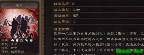 貂蝉的主战法闭月能选定一名敌军分担自身所受伤害,附带良好负面效果且发动频率较高,显著增强生存能力。配合挫锐和盛气带来的强力控制效果,大幅提升队伍整体容错性与稳定性。