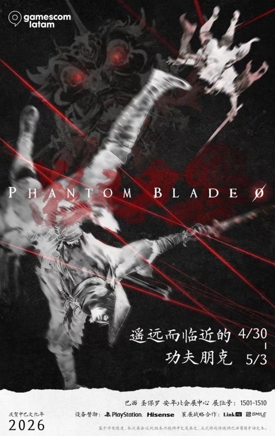 2026年正值中巴文化年,灵游坊(S-GAME)正式官宣,国产3A武侠动作游戏《影之刃零》,将作为文化年的活动内容之一,受邀参加GamescomLATAM 2026游戏展。