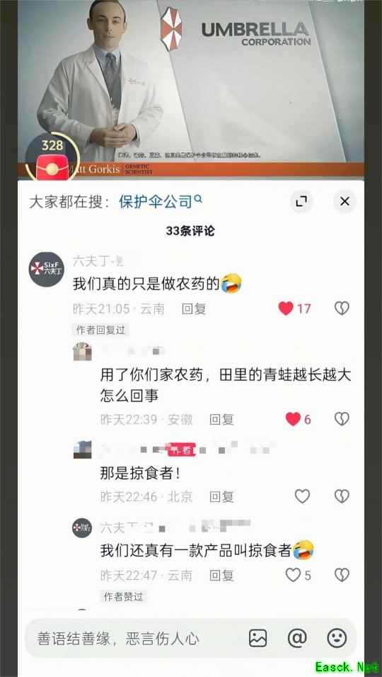 近日,一家位于河南的农作物保护公司因商标与《生化危机》系列中的知名反派企业——安布雷拉公司(UmbrellaCorporation,玩家俗称“保护伞公司”)高度雷同,在网络上引发热议。