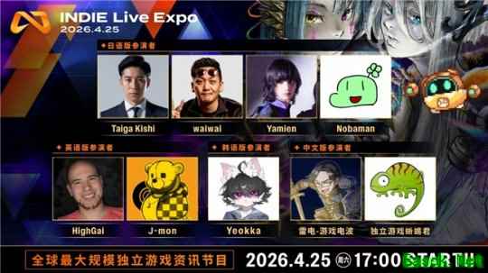 INDIE Live Expo执行委员会现公布将于2026年4月25日(周六)举行的“INDIE Live Expo 2026.4.25”节目详情及部分展示作品名单。