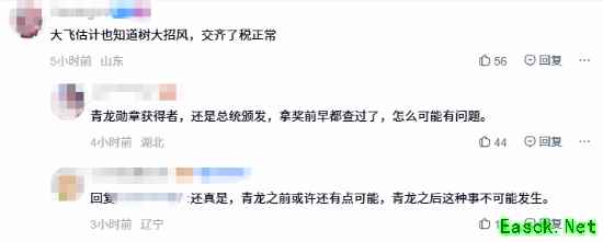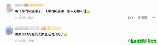 网友调侃:“飞神的回旋镖一般人可接不住”“自己逃税还想拉人下水,gg粉丝都和尺狗一样纯纯小人啊”“轰轰烈烈的避税大抽查运动开始了”。